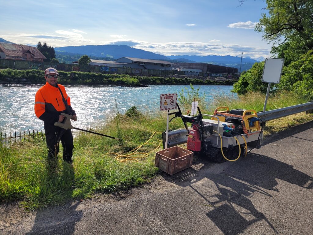 Am Aareufer beim Thalgut in Gerzensee und am gegenüberliegenden Ufer in der Gemeinde Wichtrach wächst Himalaja-Knöterich und Japanischer Staudenknöterich. Beider sind harnäckige invasive Gebeitsfremde Pflanzen welche sich über Bruchstücke mit der Aare leicht flussabwärts weiterverbreiten. Im Rahmen vom kantonalen Gewässerunterhalt und vom Projekt WBP Aare Thalgut – Chesselau wurde ich vom Tiefbauamt des Kantons Bern beauftragt verschiedene Sandorte als Pilotprojket mit dem Gerät Rootwave Pro zu behandeln.